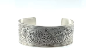 This pure sterling silver cuff bracelet is made from a beautiful patterned roll from Cranston Wire Company.